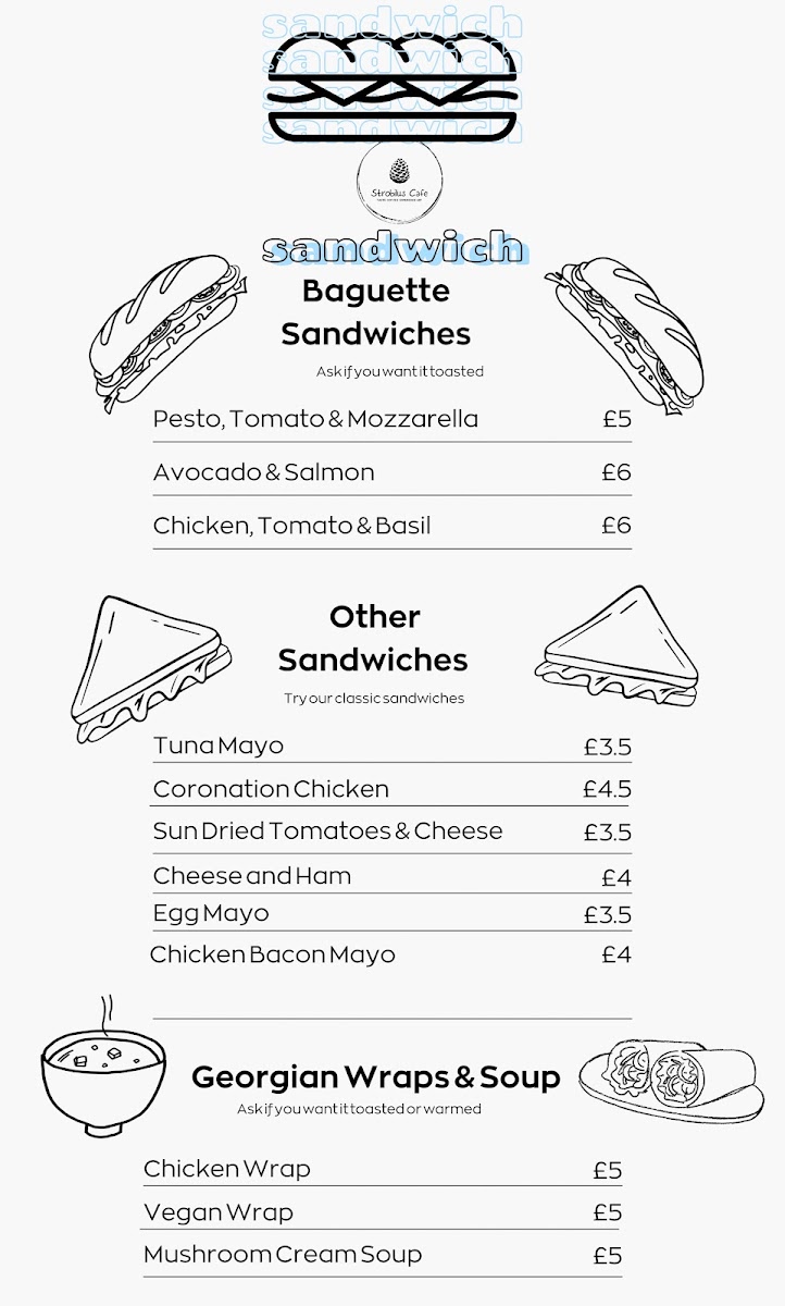 Welcome to Strobilus Cafe, a delightful new addition to the Littlehampton high street, located at 31 High Street, BN17 5EG. This inviting café offers an array of mouth-watering options sure to please any palate. From classic sandwiches like Tuna Mayo and Coronation Chicken to hearty Georgian Wraps, every dish is crafted with care and precision.